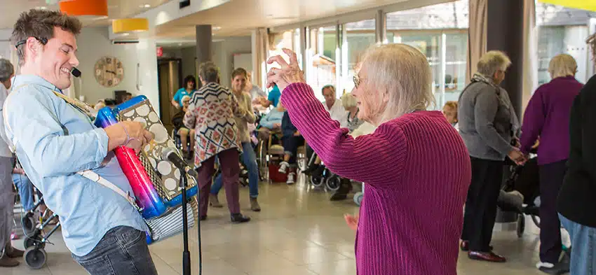 La résidence dispose d’équipements modernes : rails de transferts, Tovertafel, salle Snoezelen, balnéothérapie, salle de pause agréable, salle de repos, salle de sport…
